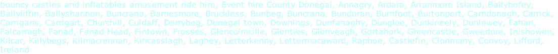 EVENT HIRE SPECIALISTS  Tel: 02871349664 07761285075 FUN FOR ALL THE FAMILY CONTACT US RPII / PIPA TYRONE FERMANAGH DERRY / LONDONDERRY contact us LARGEST RANGE OF EQUIPMENT ANTRIM ARMAGH DOWN DONEGAL County Event Hire Antrim Event hire Armagh Event hire Derry Londonderry Event hire County Down Event hire Fermanagh Event hire Tyrone Event hire Donegal Past equipment COUNTY DONEGAL RPII bouncy castle and inflatable testing Northern Ireland Equipment - click on the pictures for more information Bungee trampoline hire Donegal Photo booth hire Donegal "greenscreen" Kids carousel hire Donegal Laser tag hire Donegal mini pirate boat amusement ride hire Donegal Spinning bumper car hire Donegal Rodeo bull Bucking bronco hire Donegal Bouncy castle and inflatable hire Donegal Bouncy castle and inflatable hire Donegal Mini golf crazy golf hire Donegal carnival games stall hire Donegal Marquee hire Donegal PHOTO BOOTH HIRE BUNGEE TRAMPOLINE HIRE CAROUSEL HIRE MINI PIRATE BOAT HIRE RODEO BULL HIRE LASER TAG HIRE BUMPER CAR HIRE TODDLERS SOFT PLAY HIRE MINI GOLF HIRE CARNIVAL GAME STALL HIRE MARQUEE HIRE Christmas grotto and decoration hire Donegal CHRISTMAS GROTTO HIRE OBSTACLE HIRE Bouncy castle and inflatable hire Donegal BOUNCY CASTLE HIRE Outdoor cinema hire Donegal DRIVE IN CINEMA CHAIRPLANES Chairoplane ride hire Donegal fairground ride Bouncy castle and inflatable hire Donegal EVENT SLIDE HIRE Outdoor cinema hire Donegal OUTDOOR CINEMA HIRE